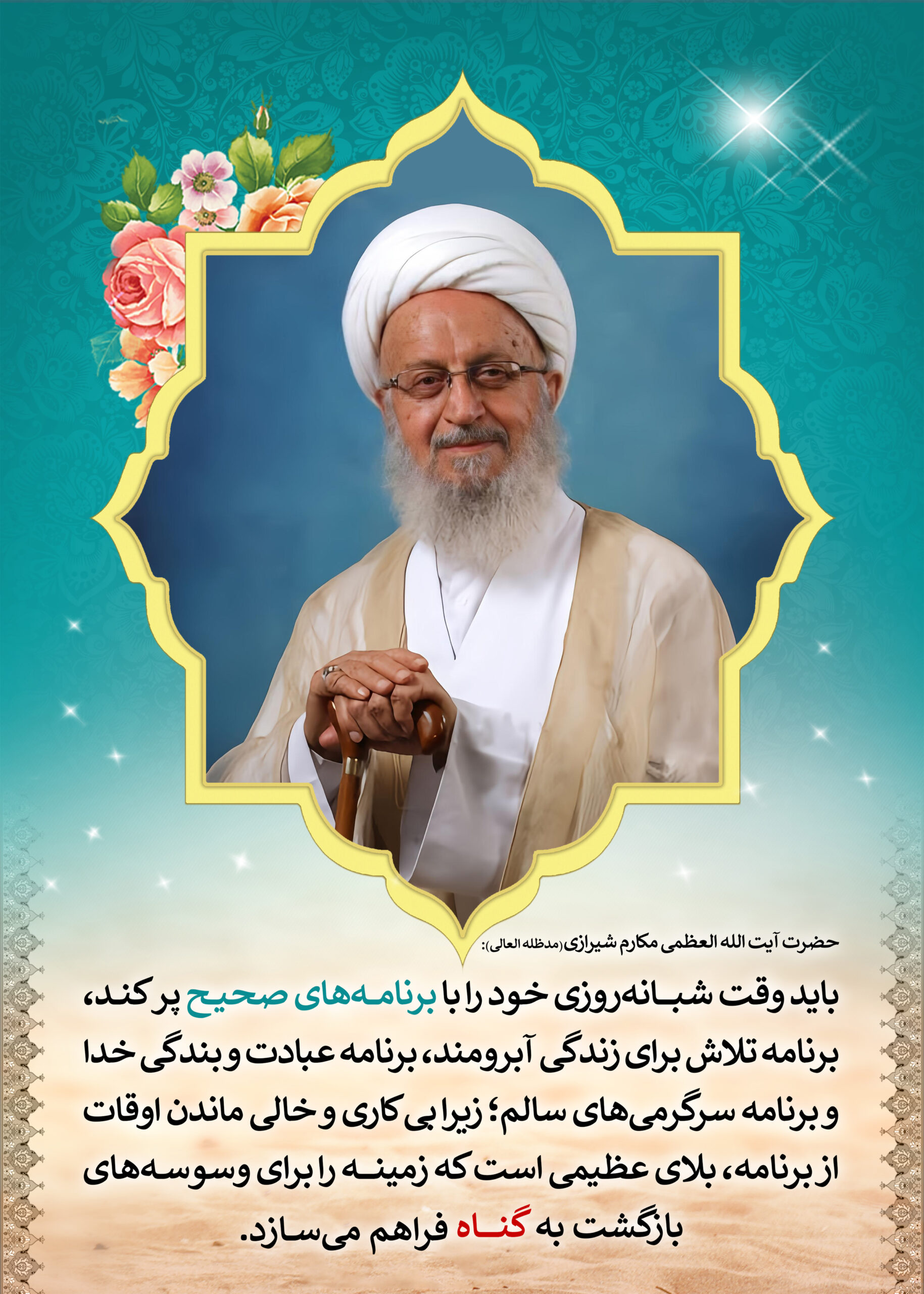 پوستر طراحی شده از حضرت آیت الله العظمی مکارم شیرازی(مدظله) در اندازه ۵۰ در ۷۰ مناسب برای چاپ بر روی کتیبه و تابلو چوبی