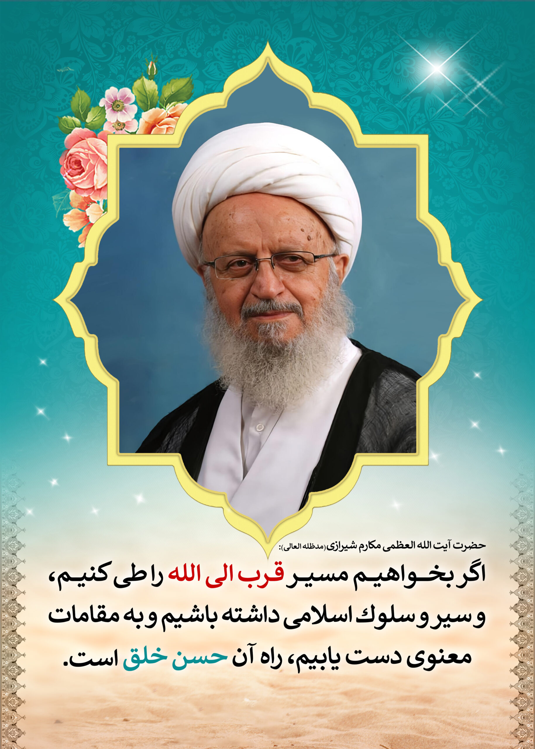 پوستر طراحی شده از حضرت آیت الله العظمی مکارم شیرازی(مدظله) در اندازه ۵۰ در ۷۰ مناسب برای چاپ بر روی کتیبه و تابلو چوبی