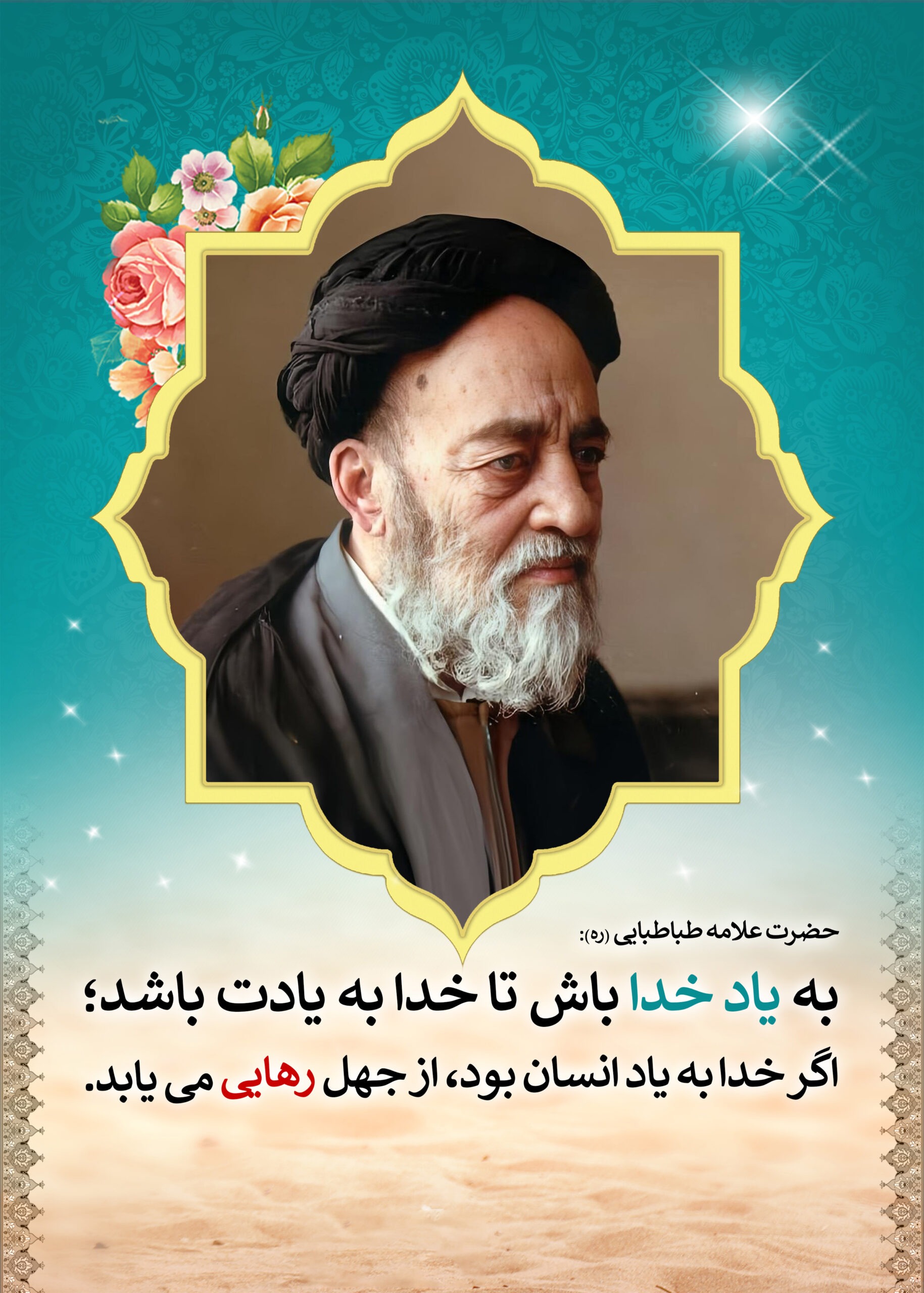 پوستر طراحی شده ازعلامه طباطبایی (ره) در اندازه ۵۰ در ۷۰ مناسب برای چاپ بر روی کتیبه و تابلو چوبی